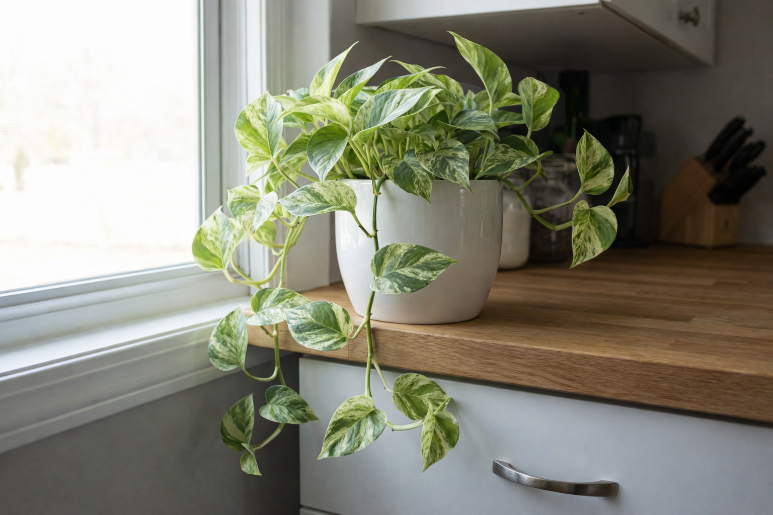ポトスは「植物との対話」を学べる最高の入門種です。 水が欲しい時、光が足りない時、元気な時のサインがはっきりしているため、初心者でも大きな失敗をせずに「植物を育てる自信」をつけられます。 また、100円ショップでも手に入るほど安価で入手しやすく、カットした茎を水につけておくだけで根が出るほど繁殖力が強いため、「増やす楽しみ」も手軽に味わえます。